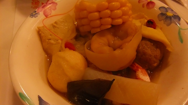 練物とか野菜とか牛肉(?)とか海鮮とかかまぼことかが入ってた。