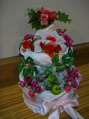 手土産はオムツケーキ。